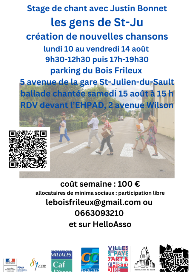 Stage de danse contemporaine du 6 au 10 juillet 2026 (5 jours) de 9h00 à 12h00 Salle de danse de Villeneuve-sur-Yonne (89500), rue Jorge Semprun Tarif 150 € – Personnes bénéficiaires de minima sociaux, contactez les CCAS de votre ville Danse contemporaine sur le thème du radeau ; entre immensité et espace restreint. Chaque matinée…