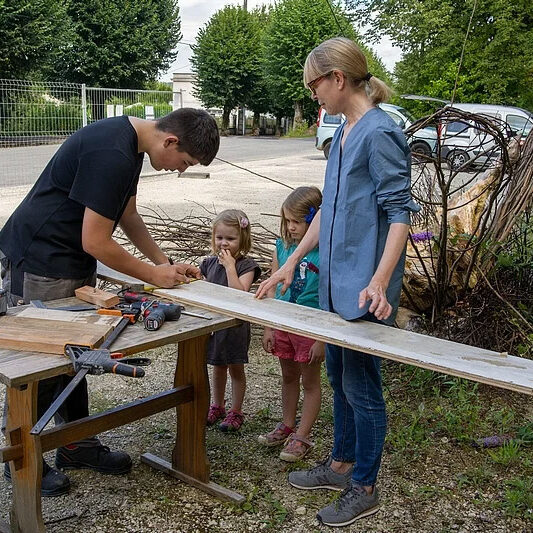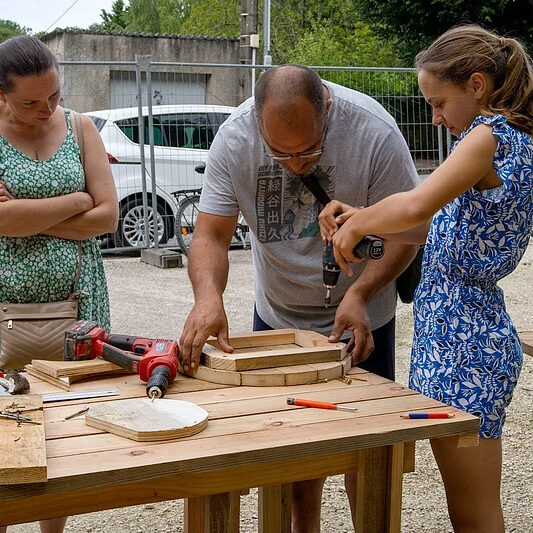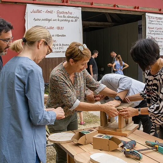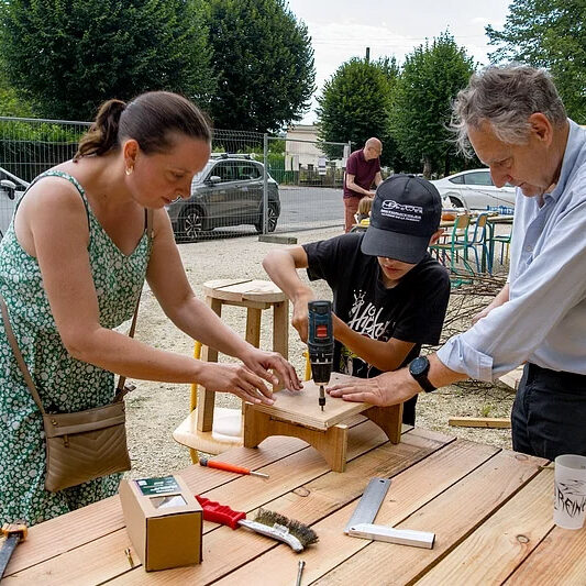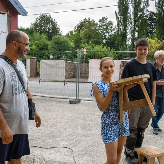 Atelier menuiserie – 21 juillet 2024 C’était le dimanche 21 juillet au Bois Frileux à partir de 16h. Chacun(e) a dessiné puis assemblé son tabouret. Sur le parking du Bois Frileux, 5 avenue de la gare 89330 Saint-Julien-du-Sault. Catégorie : passés Partager cet article Partager sur FacebookPartager sur Facebook Share on XPartager sur X Partager sur LinkedInPartager sur LinkedIn Navigation articleSuivantArticle suivant :Atelier décoration de jardinières – du 4 au 11 août 2024Autres événementsVisite du musée Bourdelle à Égreville le 12 septembre 202518 septembre 2025Présentation des jardins familiaux de Vitré le 22 août 202531 août 2025Atelier de monotypes avec Corinne Bretel le 17 août 202531 août 2025Atelier de cyanotype à l’EHPAD le 27 août 202530 août 2025Dîner-concert avec Typhaine Heels et Franck Dumont le 23 août 202530 août 2025Fabrication de conserves avec les fruits de nos jardins le 23 août 202530 août 2025