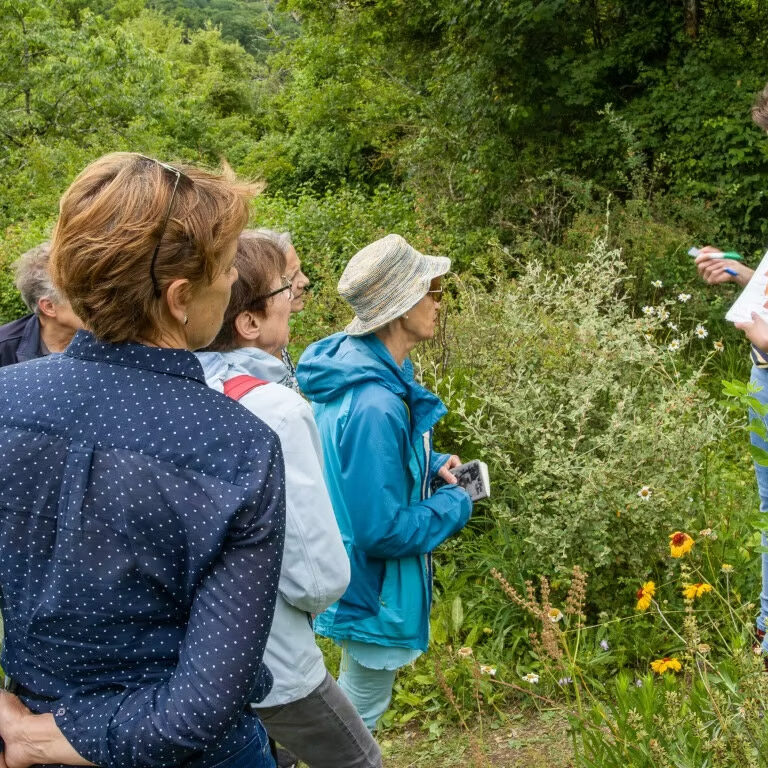 La balade des « jardins de pluie » suivra le fil de l’eau à St-Julien, captée par les bâtiments, les surfaces imperméables et les mille et un chemins qu’elle peut prendre jusqu’à sa destination finale, le milieu naturel. Le jardin de Michel a servi d’exemple pour une démonstration de tout ce qui peut être mis en œuvre pour préserver cette ressource.