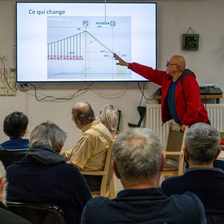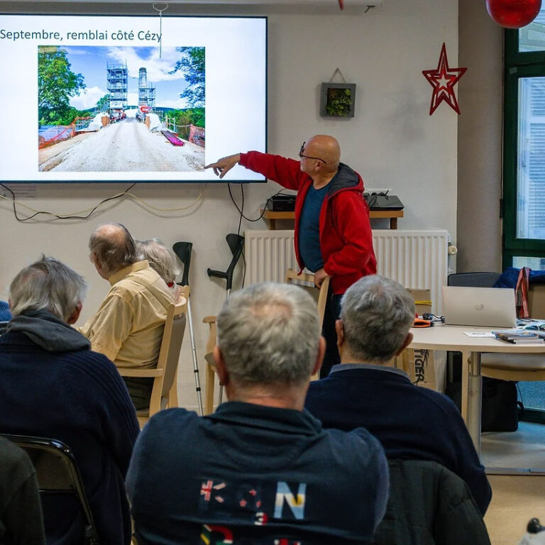 EHPAD – Conférence sur les ponts suspendus de l’Yonne – 16 décembre 2024 Conférence animée par Brigitte Guyonnot et Claude Sciboz , bénévoles. Catégorie : passés Partager cet article Partager sur FacebookPartager sur Facebook Share on XPartager sur X Partager sur LinkedInPartager sur LinkedIn Navigation articlePrécédent Article précédent :EHPAD – Le chemin de l’école – 18 novembre 2024SuivantArticle suivant :EHPAD – Décor du spectacle de l’IME – 2 février 2025Autres événementsVisite du musée Bourdelle à Égreville le 12 septembre 202518 septembre 2025Présentation des jardins familiaux de Vitré le 22 août 202531 août 2025Atelier de monotypes avec Corinne Bretel le 17 août 202531 août 2025Atelier de cyanotype à l’EHPAD le 27 août 202530 août 2025Dîner-concert avec Typhaine Heels et Franck Dumont le 23 août 202530 août 2025Fabrication de conserves avec les fruits de nos jardins le 23 août 202530 août 2025