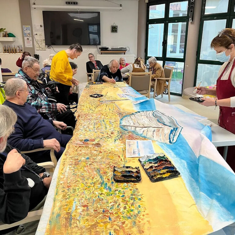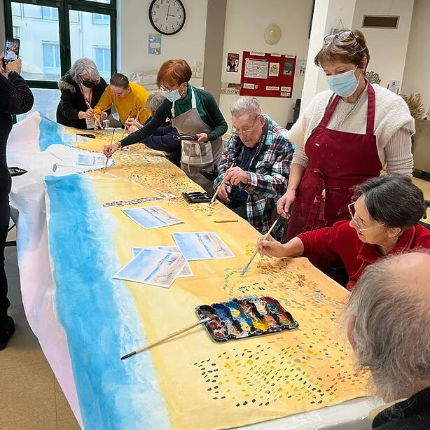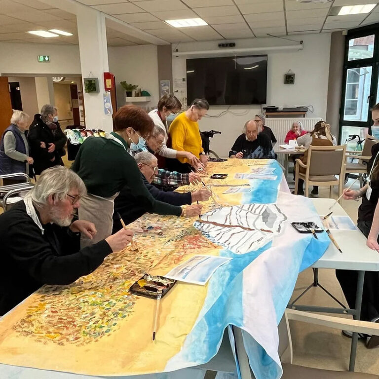 EHPAD – Décor du spectacle de l’IME – 2 février 2025 Ce jour, les résidents de l’EHPAD ont peint le décor du spectacle des enfants de l’IME prévu le 22 mai prochain. Merci à Sylvie Blanc et Alain Peter de les avoir encadrés. Catégorie : passés Partager cet article Partager sur FacebookPartager sur Facebook Share on XPartager sur X Partager sur LinkedInPartager sur LinkedIn Navigation articlePrécédent Article précédent :EHPAD – Conférence sur les ponts suspendus de l’Yonne – 16 décembre 2024SuivantArticle suivant :Semaine de la nature – du 17 au 25 mai 2025Autres événementsVisite du musée Bourdelle à Égreville le 12 septembre 202518 septembre 2025Présentation des jardins familiaux de Vitré le 22 août 202531 août 2025Atelier de monotypes avec Corinne Bretel le 17 août 202531 août 2025Atelier de cyanotype à l’EHPAD le 27 août 202530 août 2025Dîner-concert avec Typhaine Heels et Franck Dumont le 23 août 202530 août 2025Fabrication de conserves avec les fruits de nos jardins le 23 août 202530 août 2025