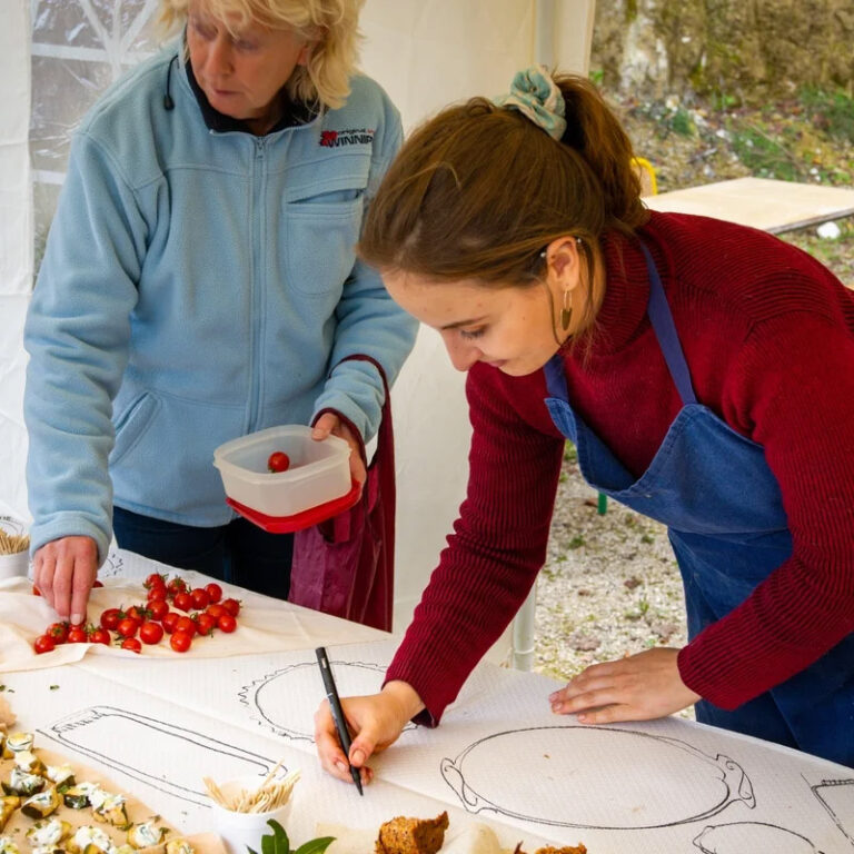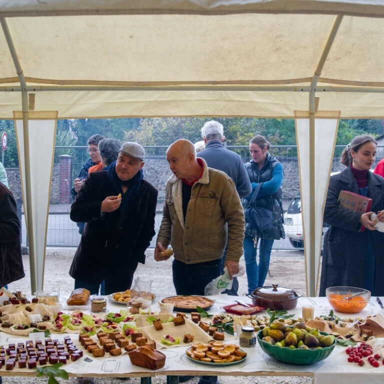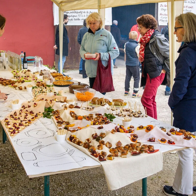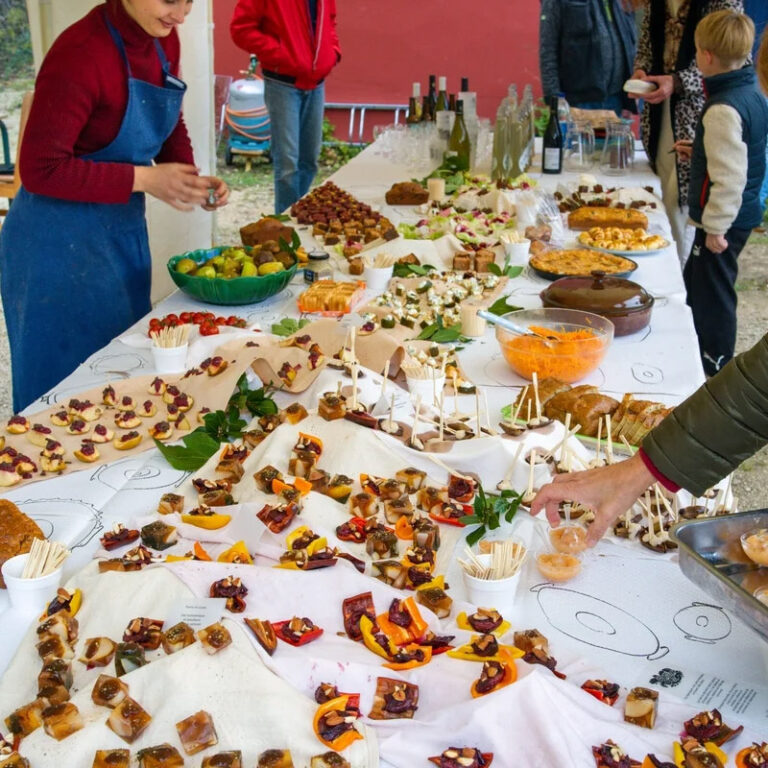 Mise en scène culinaire avec Agathe. Un maximum de produits locaux de saison et bios. 50 personnes ont participé à cette rencontre sous le sceau du lien et du partage. L’événement s’est déroulé entre 18h et 22h sur le parking du Bois Frileux.